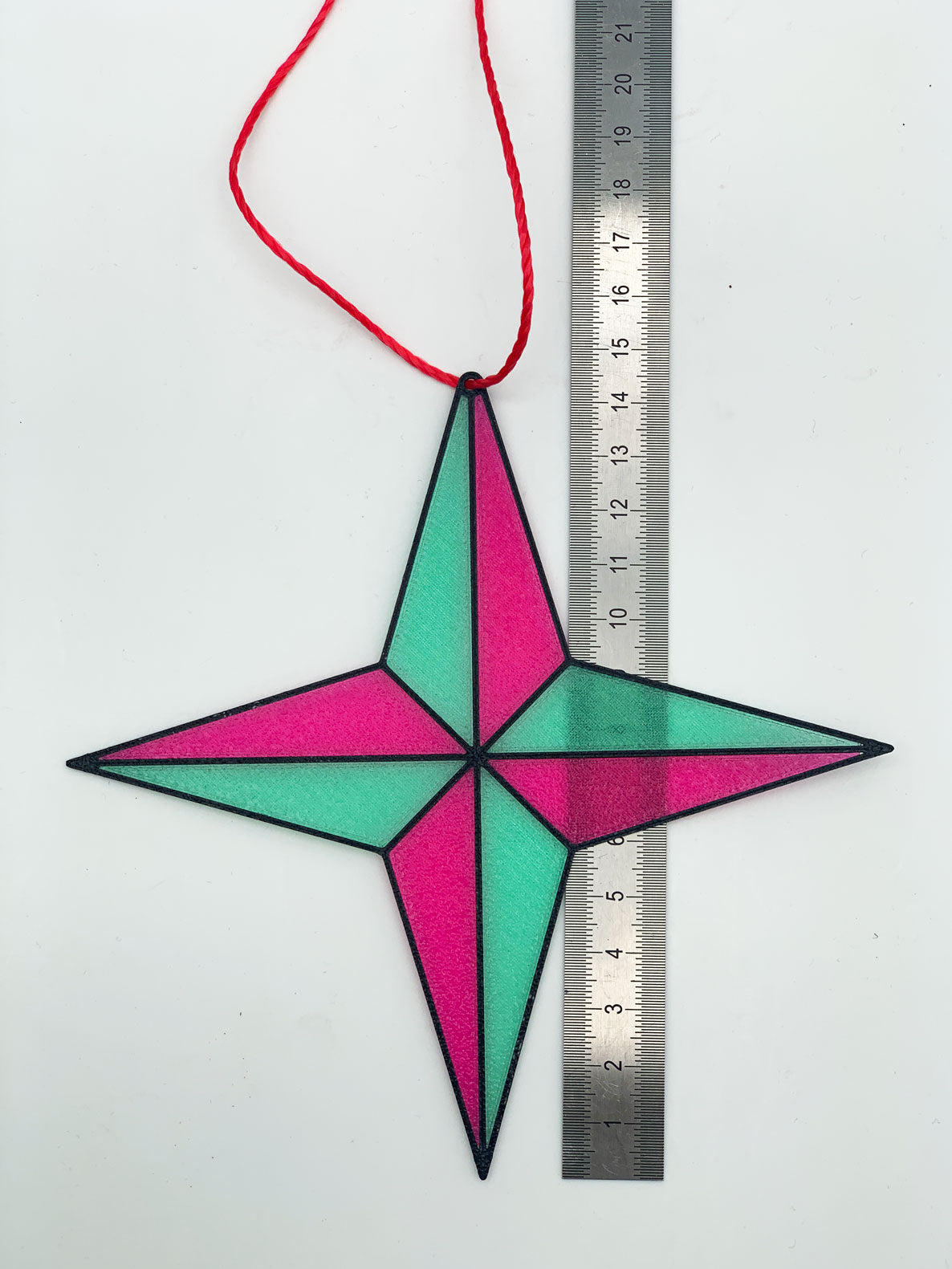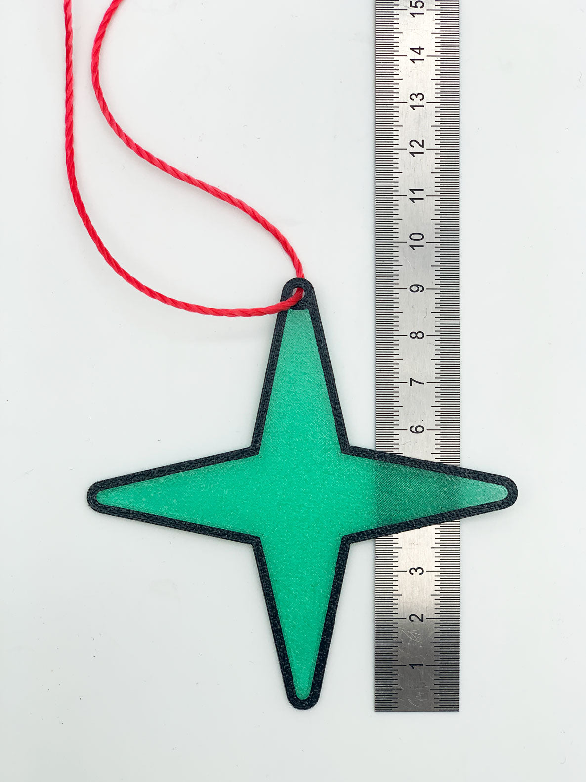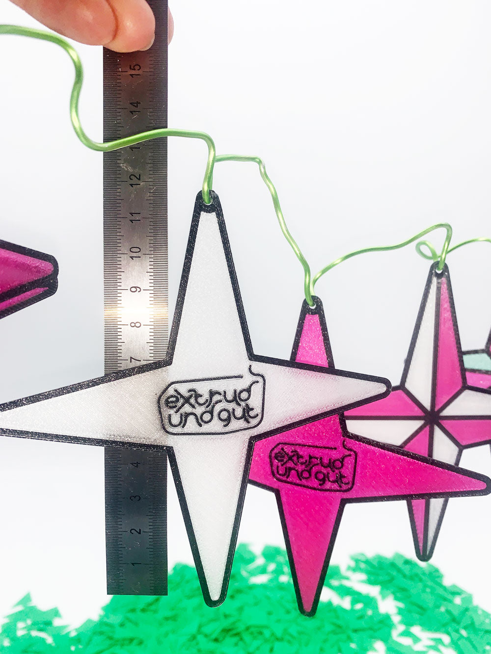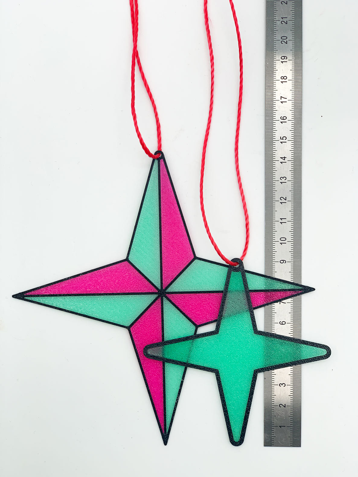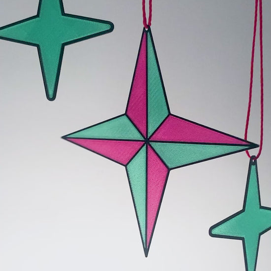 Unsere 3D-gedruckten, zweidimensionalen Weihnachtssterne in Rot und Grün setzen stilvolle Akzente an Baum, Fenster oder Geschenkverpackung. Die klaren schwarzen Rippen verleihen jedem Stern eine moderne, grafische Note. Erhältlich in 14 cm und 9 cm – perfekt als dekoratives Duo oder einzeln ein Hingucker.